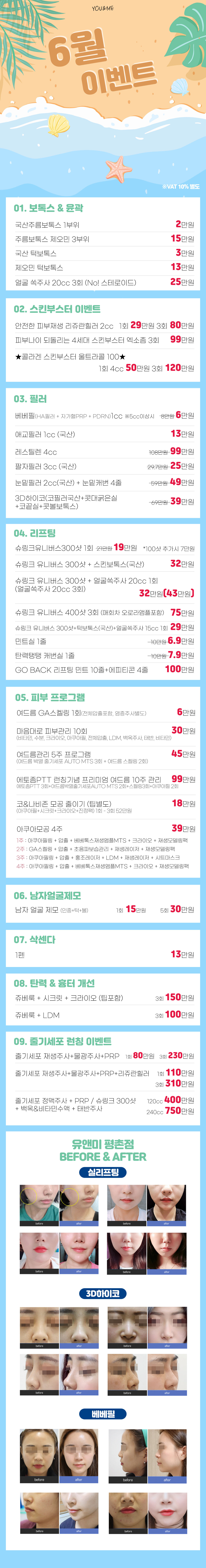 안양 비산동에서 스킨부스터 울트라콜 가격 비용이 참한 피부과 안양 유앤미의원의 특별한 울트라콜 100 01. 붓기와 멍을 최소화하는 일회용 케뉼라를 사용합니다. 02. 수만건의 쁘띠성형임상을