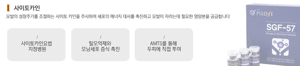 모발의 성장주기를 조절하는 사이토카인을 주사하여 세포의 에너지 대사를 촉진하고 모발이 자라는데 필요한 영양분을 공급합니다