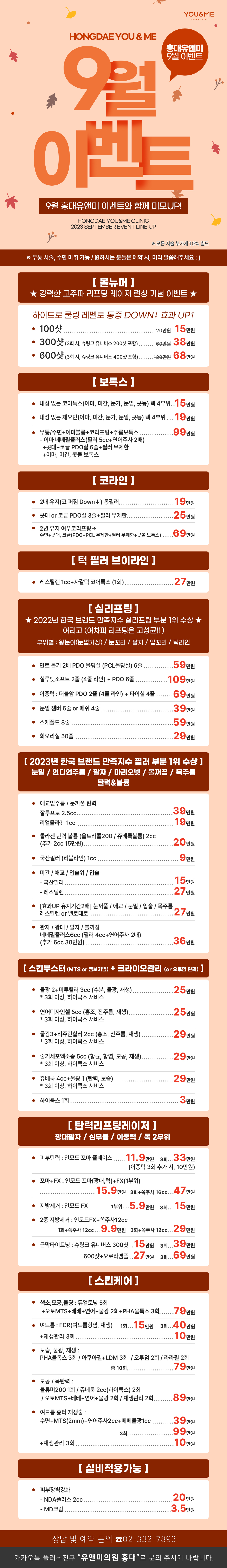 레이저 토닝을 잘하는 대흥역 홍대입구 유앤미에서 다양한 9월 이벤트를 확인해보세요!