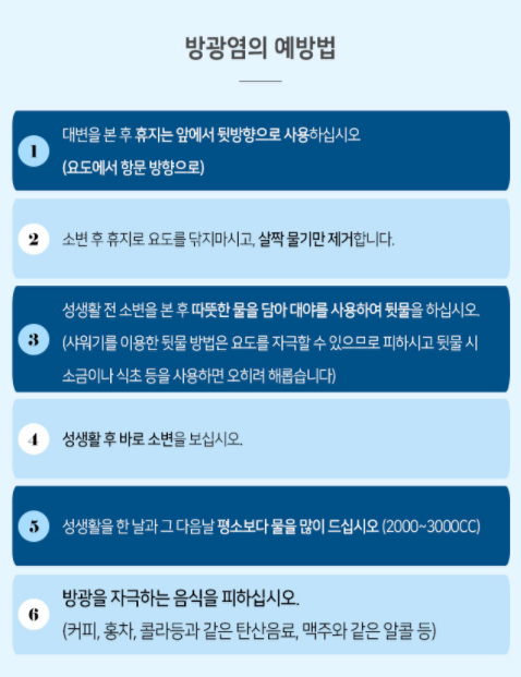 - 소변 후 휴지로 요도를 닦지마시고, 살짝 물기만 제거합니다