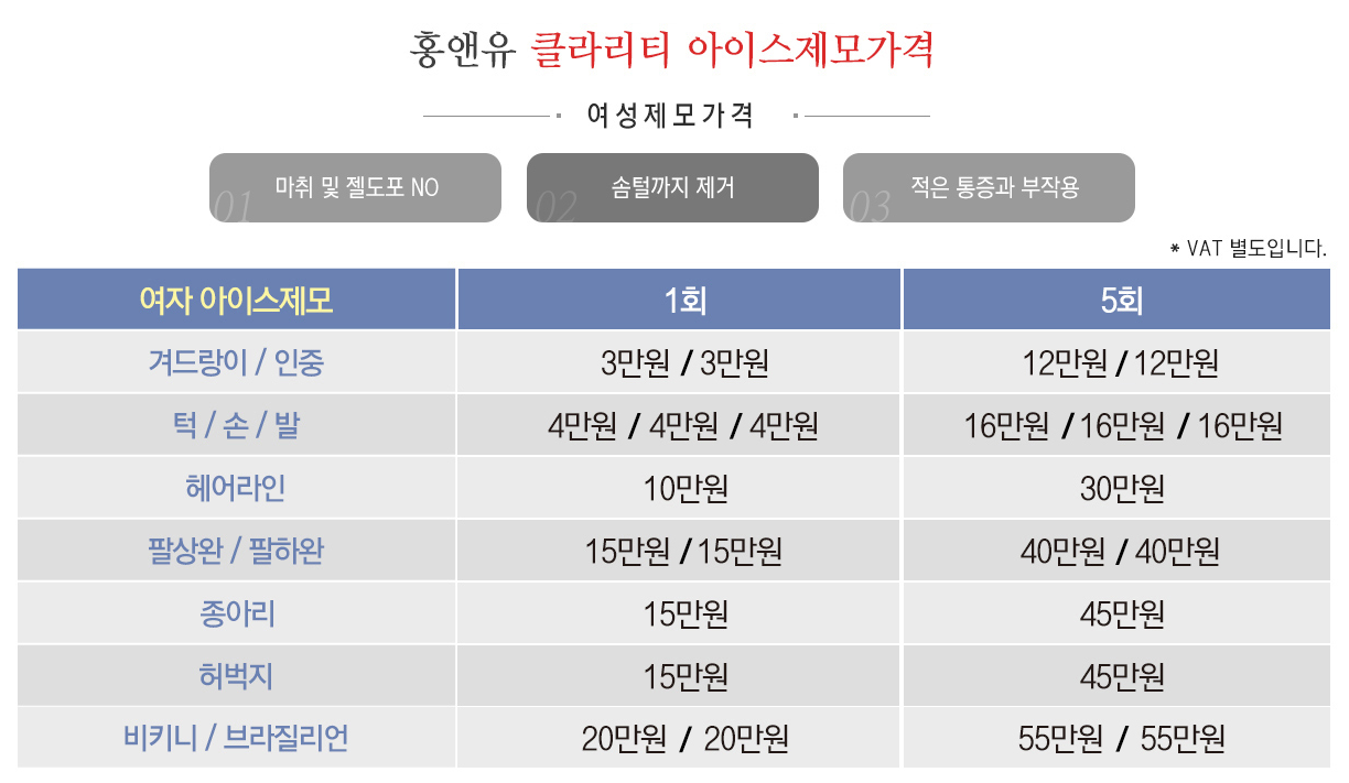 홍앤유의원, 클라리티 아이스제모 합리적인 가격을 확인해보세요