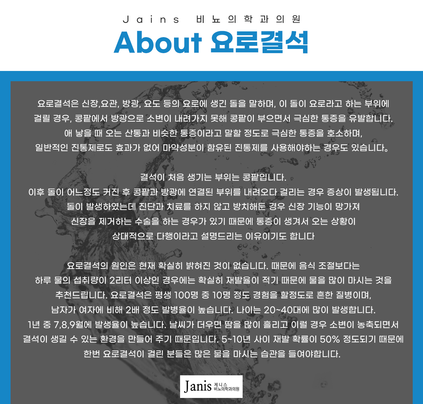 여러분, 부평요로결석에 대해 고민하고 계신가요? 이 글을 통해 요로결석의 원인과 증상, 그리고 효과적인 치료 방법을 알아보실 수 있습니다. 특히 부평 인근에서 요로결석으로 인한 배뇨통과 요통 치료를 고민 중이신 분들께 제니스 비뇨기과를 추천드리며, 왜 제니스 비뇨기과가 많은 환자들에게 신뢰받고 있는지 설명해드릴게요.
