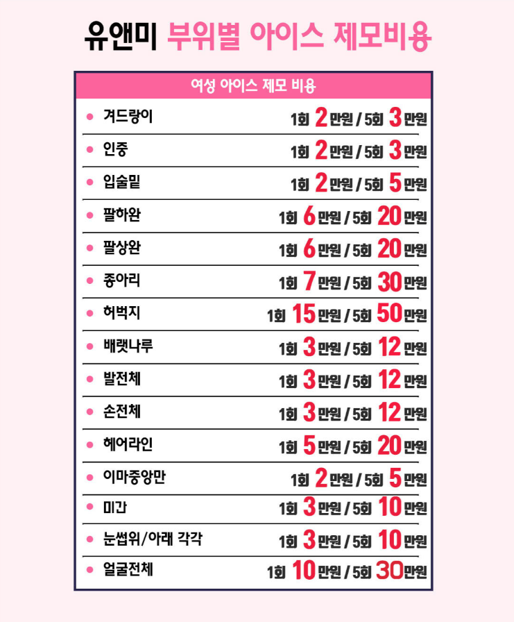 범계 유앤미의원의 아이스 제모 부위는요!
