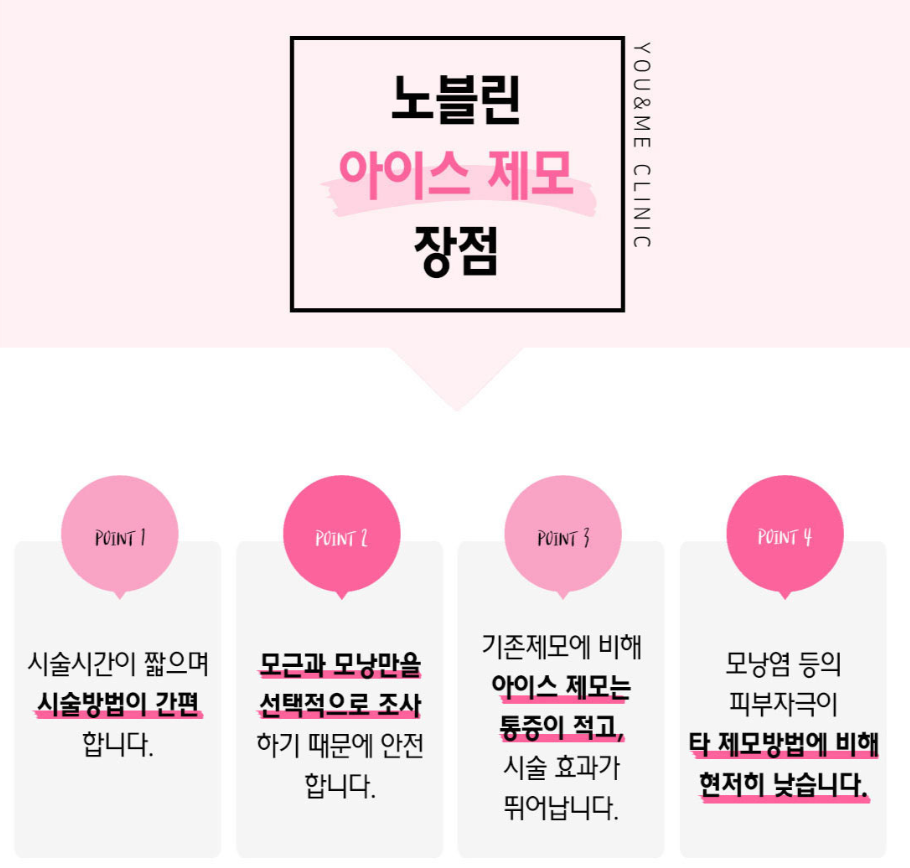 제모시술을 잘하는 범계 유앤미의원은 노블린 아이스제모를 사용합니다.
