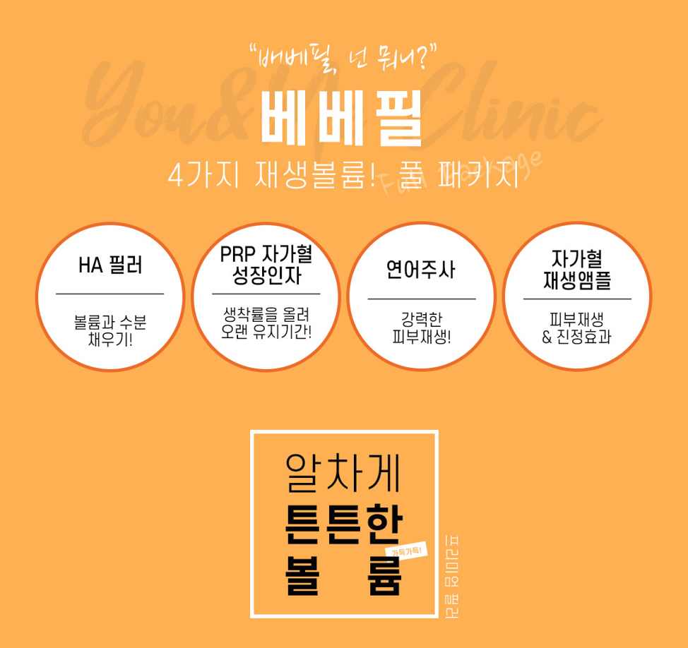 풀페이스필러 베베필로 HA필러, PRP자가혈 성장인자, 연어주사, 자가혈 재생앰플을 만나보세요
